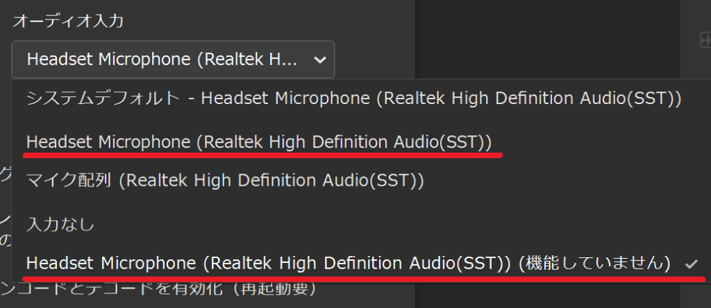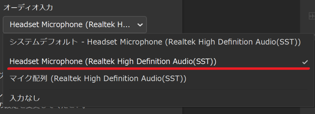 「Headset Microphone (Realtek High Definition Audio (SST))」が2つあるから。