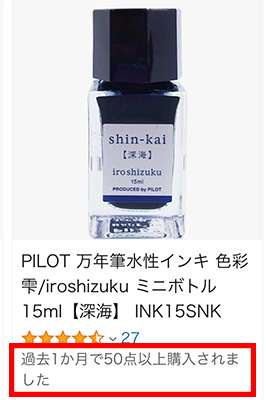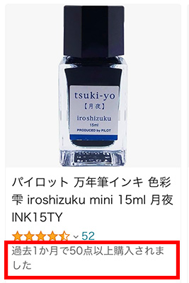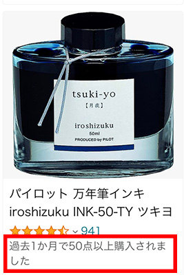 さっきの「月夜」にもあった、「過去1か月で50点以上購入されました」の文言がありました!
